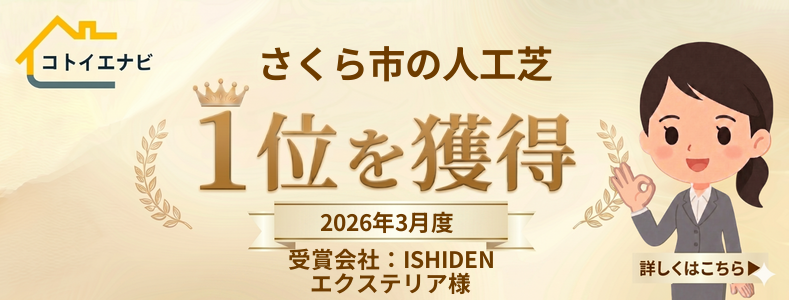 <a href="https://media.bisenn.jp/artificial-grass/tochigi-artificial-grass/sakura-25/" target="_blank" rel="noopener"><img src="https://media.bisenn.jp/banner_img_top1/artificial-grass-tochigi-artificial-grass-sakura-25-top1-2026-03.png?v=1776903806" style="max-width:420px;" alt="さくら市の人工芝施工で「口コミからわかる」おすすめの評判がいい業者ランキングTOP6【2026年3月度・1位獲得・ISHIDENエクステリア様】"></a>